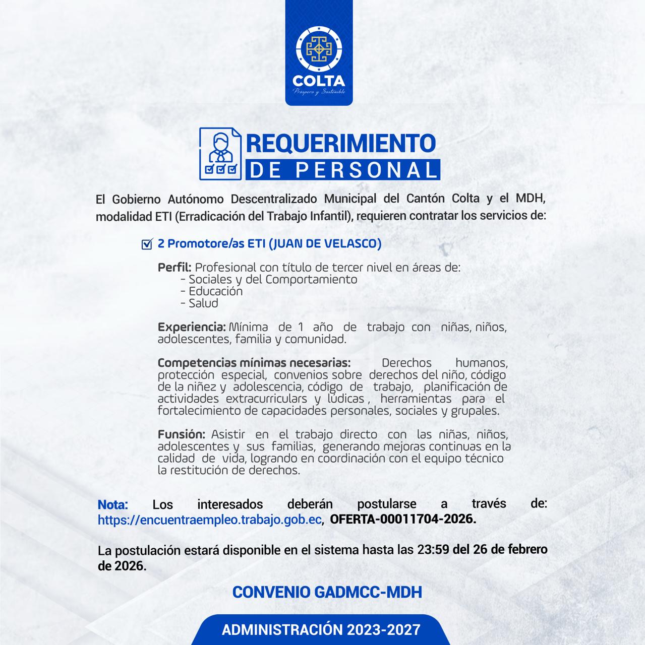 Requerimiento de Personal  EI Gobierno Autónomo Descentralizado Municipal del Cantón Col...